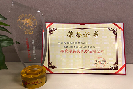 公司榮獲2020中國金融機構(gòu)金牌榜“年度最具競爭力保險公司”