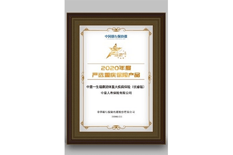 中意一生福康團體重大疾病保險(優(yōu)睿版)獲得中國銀行保險報“2020年度嚴(yán)選重疾保險產(chǎn)品”