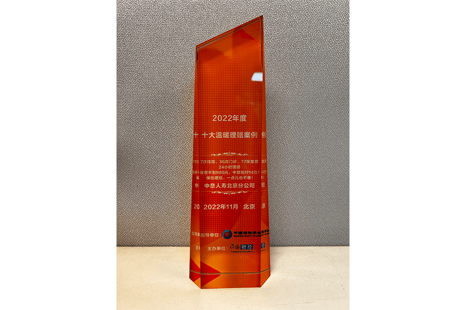 中意人壽榮獲“2022年度十大溫暖理賠案例”