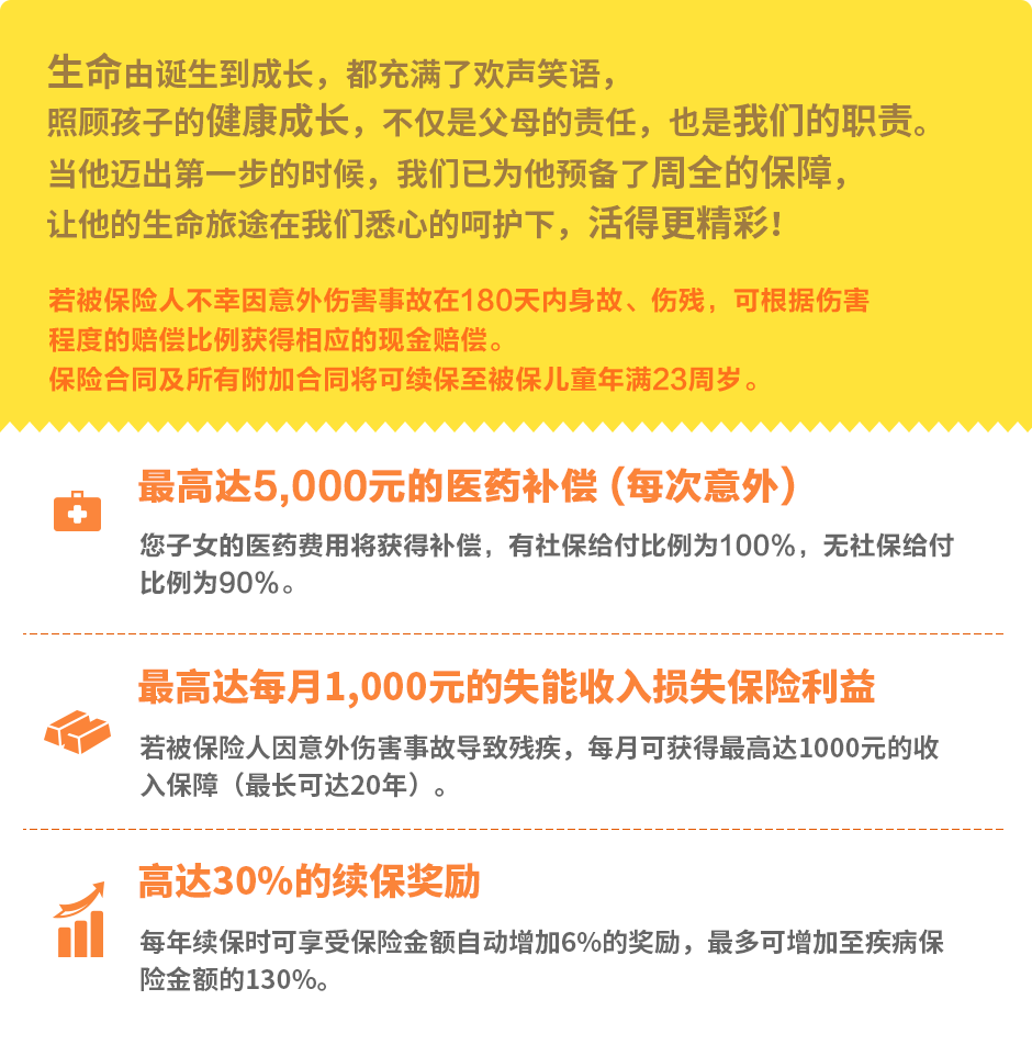 投保年齡:30天 — 17周歲(可續保至23周歲)